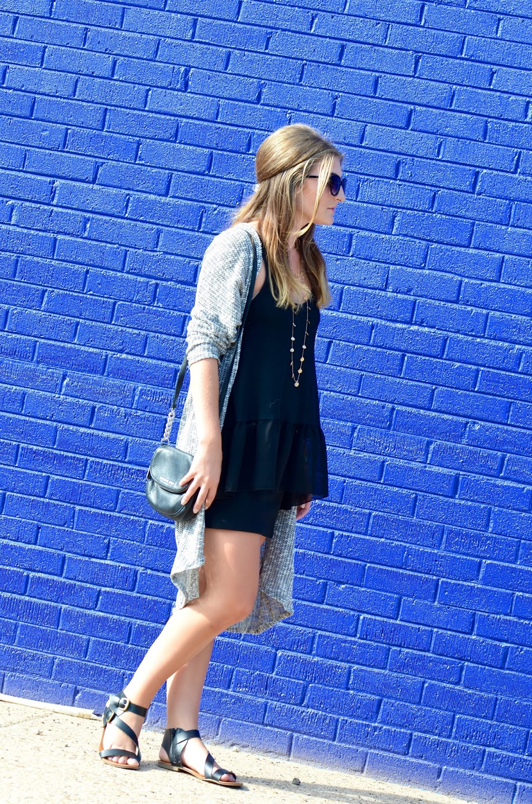 Obviously this is a warmer way to style a long cardigan… this day was actually 90 degrees out.. But by taking a tank and a skirt and layering on this long cardigan I have as well as layering some necklaces, breaks up the outfit and adds a little bit of warmth.